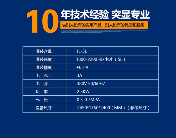 本機是根據潤滑油的特性而設計的一款全自動稱重式潤滑油灌裝機,該機設計緊湊合理,外形簡介美觀大氣,灌裝量調節方便,精度高。借鑒了歐美國家的灌裝流程控制技術,彩色觸摸屏人機界面,灌裝進程實現一鍵操作,性能穩定。采用兩個316儲油罐解決灌裝量大的問題,一個進油口控制兩個油箱的液位,一個儲油箱分別控制5個灌裝頭,速度更快,精度更高。